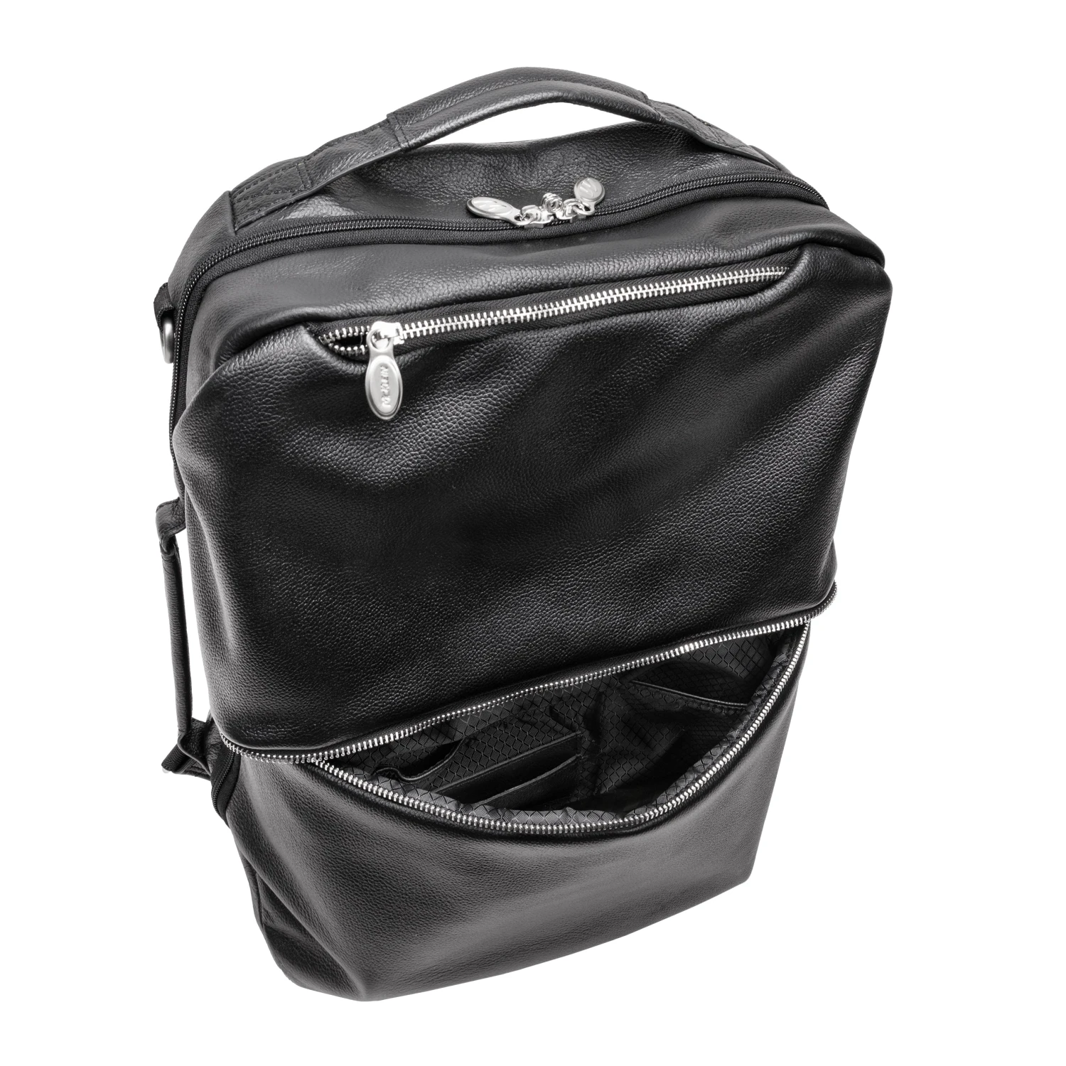 This versatile 17 nylon convertible travel backpack and messenger bag can carry you to your next trip fully prepared. Multiple options for the way you hand carry your essentials with top or side carrying handle. Keep your business items easily accessible in front horizontal zipper compartment with interior accessory organizer. Top pocket with exterior and interior access to store cellphones and keys. Safely store your important devices in our interior 17 built in padded laptop sleeve or the secure tablet pocket. Storage has never been easier in our fully lined interior with leather trim and silver hardware. Rear exterior features ultra-padded air mesh with air flow system (AFS) and padded backpack straps. Store it on a rolling case for easier transport with our piggyback strap. Comes with a detachable non-slip, adjustable, padded strap for shoulder carry.