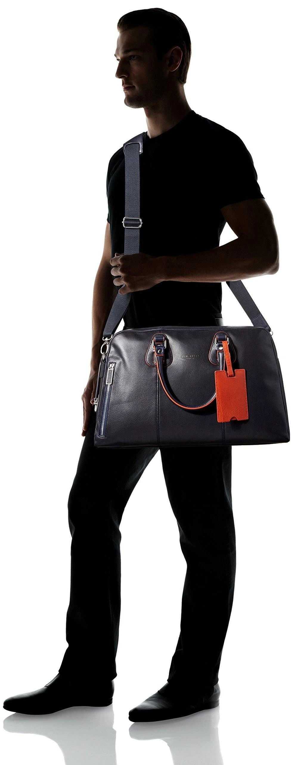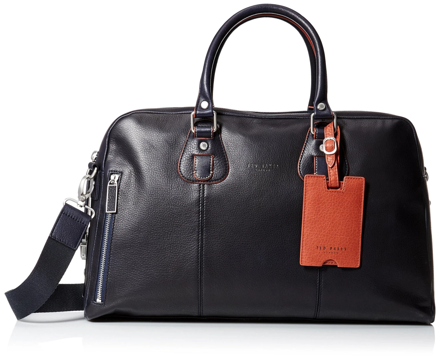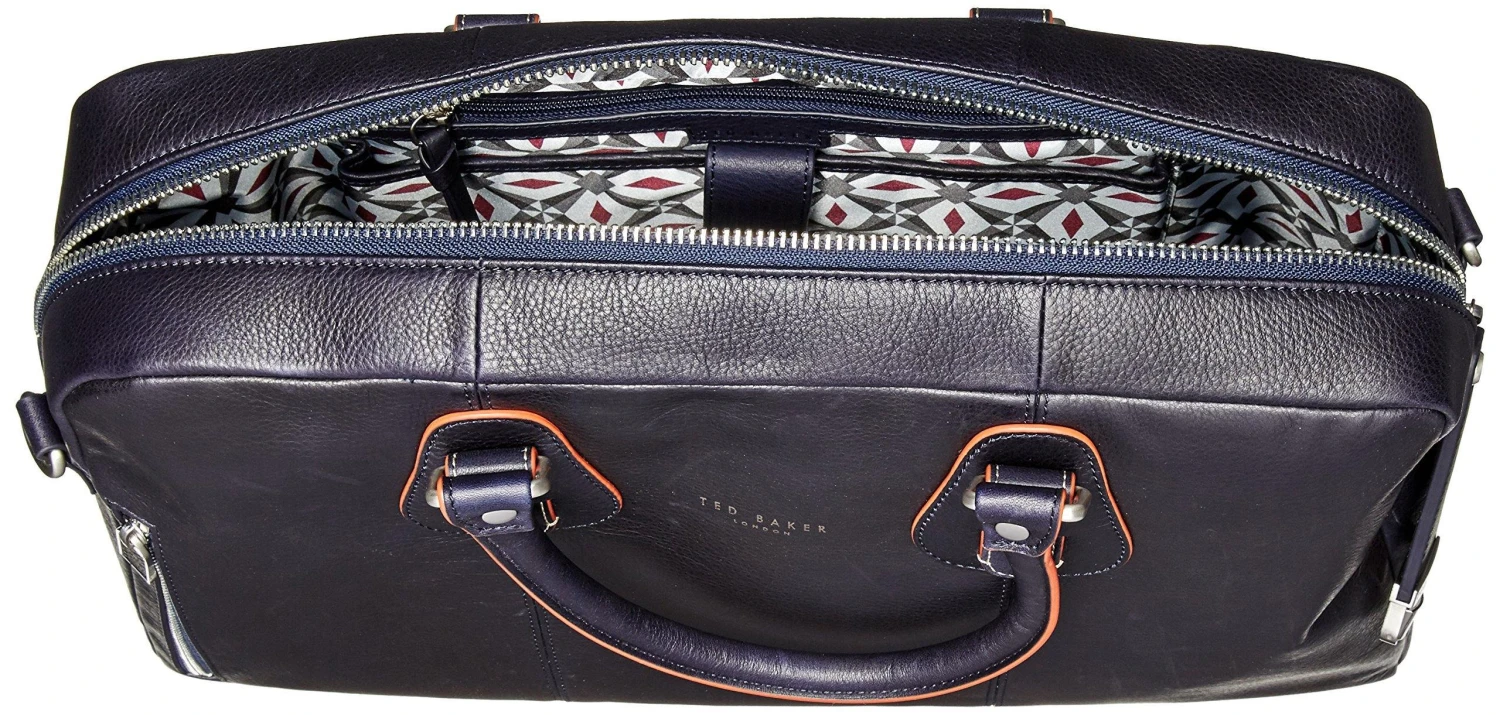 Ted Baker branded logo. Edge paint detail. Interior pockets.