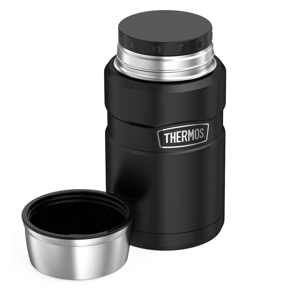Color:Matte Black The Thermos brand is well known as the quality andperformance leader in insulated food and beverage products. The Stainless Kingseries creates a new chapter in Thermos’ storied history with a modern linethat blends out newest technology with a dash of the past. An ideal choice forpeople on the go, the Stainless King Vacuum Insulated Food Jar is built tolast and loaded with features to make for a more enjoyable eating experience.Thermos vacuum insulation technology virtually eliminates temperature changewithin the food container by creating an airless space between two stainlesssteel walls. The result is an insulation layer that performs better than anyother. A superior insulated container you can depend on to keep your foodhotter, colder, fresher, longer. Constructed with double wall stainless steel,this 24 ounce food jar is virtually durable, yet its sleek design is both eye-catching and functional. The contoured body shape is easy to grip and the widemouth opening is easy to fill, eat from and clean. The lid serves a dualpurpose by also functioning as a serving bowl. The Stainless King Food Jarfeatures premium, double wall vacuum insulation so the stainless steel bodystays cool to the touch with hot items and condensation-free with cold items.Only the best materials are used to construct this food jar and are 100% BPAfree. In order to maximize the incredible insulation technology, it isrecommended to either pre-chill or pre-heat the food jar just prior to use.This can be accomplished by filling the food jar with cold or hot tap water,attaching the lid and letting it rest for a few minutes. Before you are readyto use, simply empty the water and fill with your favorite food item.Attaching the lid will further increase the thermal efficiency.