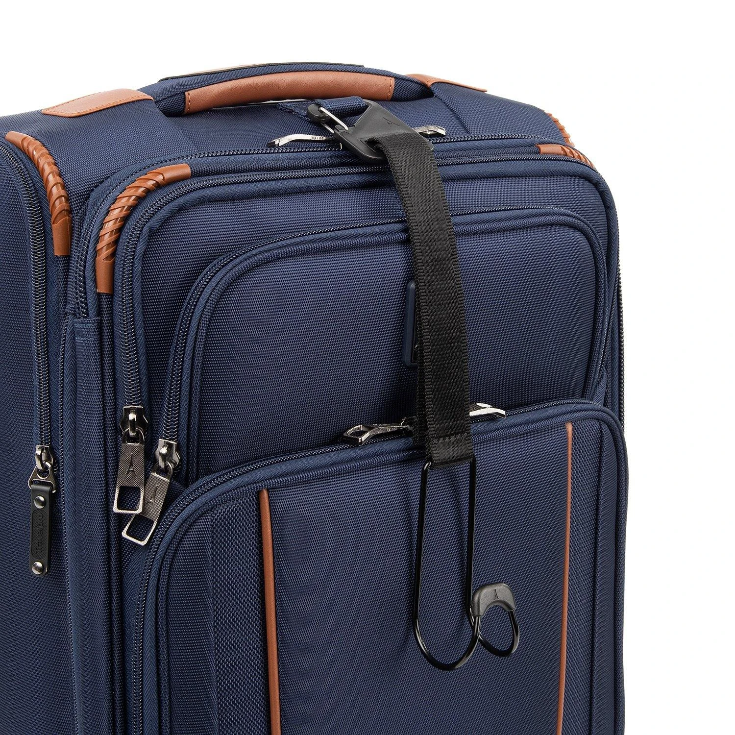 - Built-in protection includes robust corner armor, skid guards and durable wheel housings that protect high-wear points. Tip-resistant zippered expansion lets you increase packing space up to 2 . Add-a-bag strap and metal J-Hook allow you to carry additional bags hands-free.